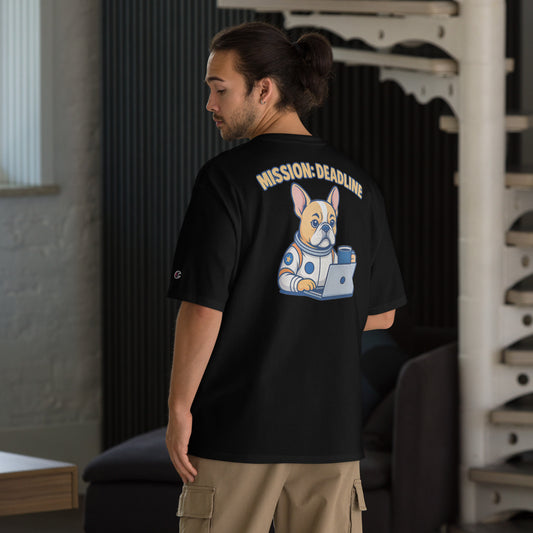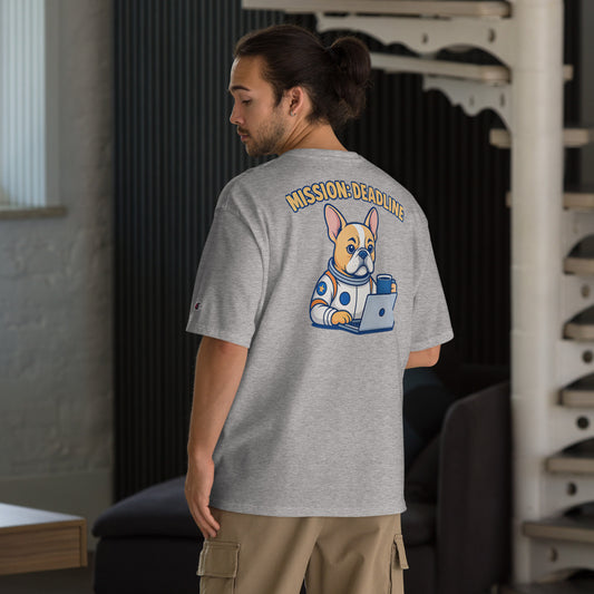 Mission: Deadline – Men’s Champion® T-Shirt mit Astronaut-Frenchie